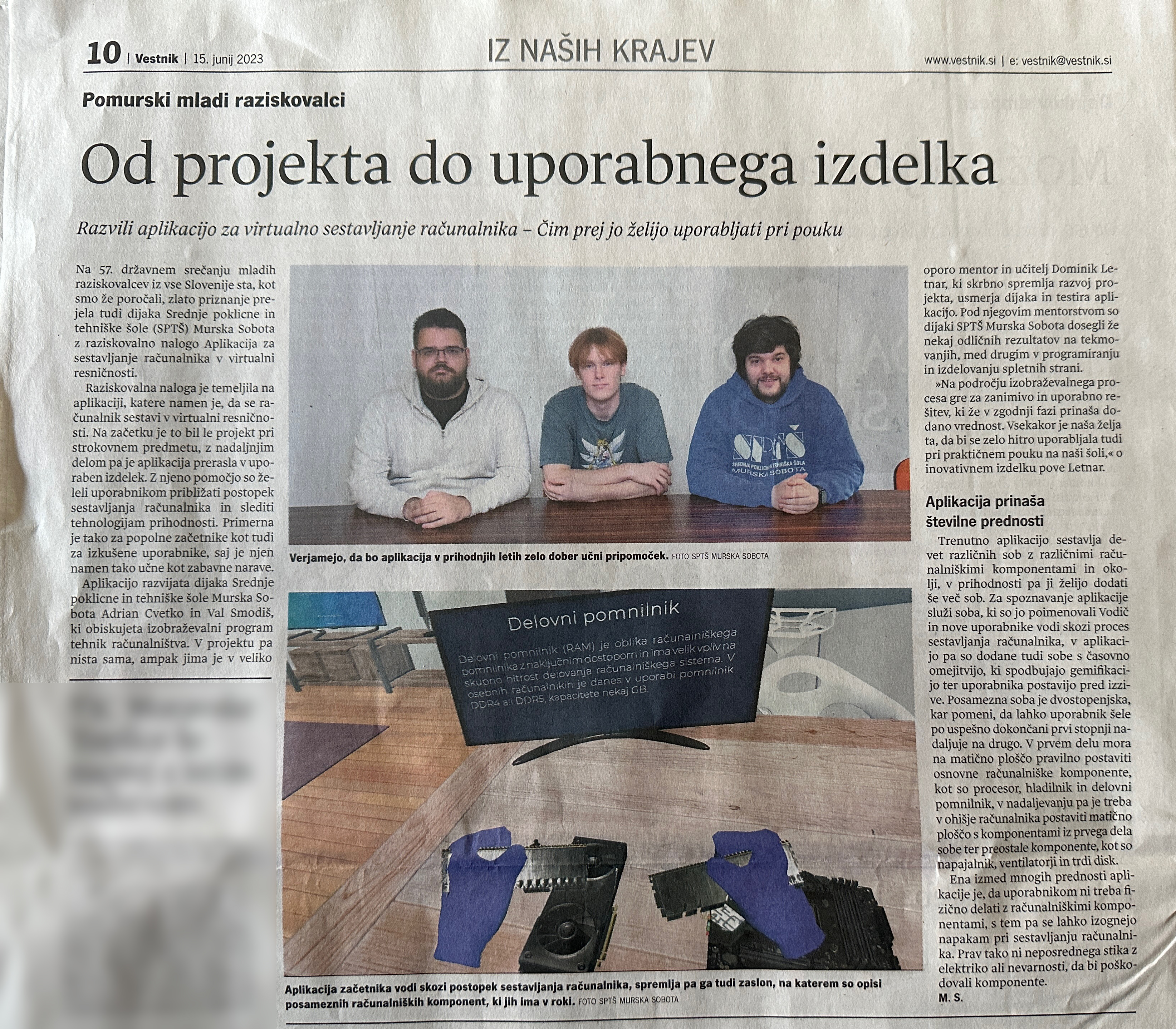 V pomurskem časopisu Vestnik poročajo o pomurskih mladih raziskovalcih: "Od projekta do uporabnega izdelka".