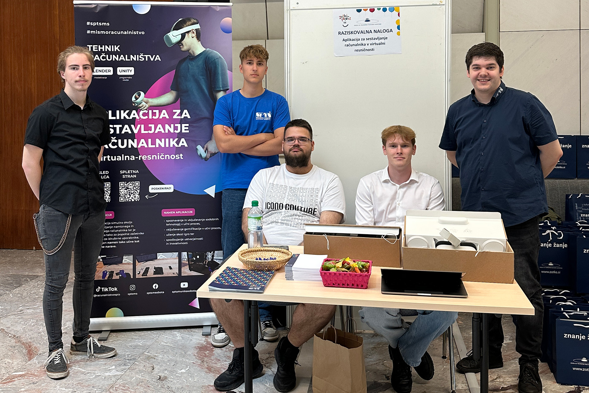 Raziskovalna naloga »Aplikacija za sestavljanje računalnika v virtualni resničnosti« je na 57. Srečanju mladih raziskovalcev Slovenije v kategoriji aplikativni inovacijski predlogi in projekti osvojila zlato priznanje in 1. mesto. Srečanje mladih raziskovalcev Slovenije organizira Zveza za tehnično kulturo Slovenije. Omenjena raziskovalna naloga je temeljila na aplikaciji, katere namen je, da računalnik sestavite v virtualni resničnosti.